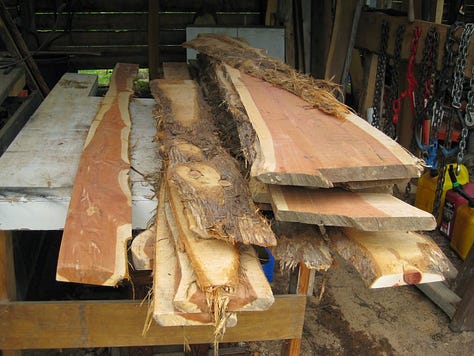 It was an enormous amount of work simply to find markets for the wood products, much less retrieve the trees and logs and mill and kiln-dry and shape and sand it all. That entire day one employee and I spent planing someone’s recovered stack of Cedar planks? The client probably could have bought something similar from IKEA for far less money than that day’s labor cost. Even though I was working at that sawmill for free, nobody else was.