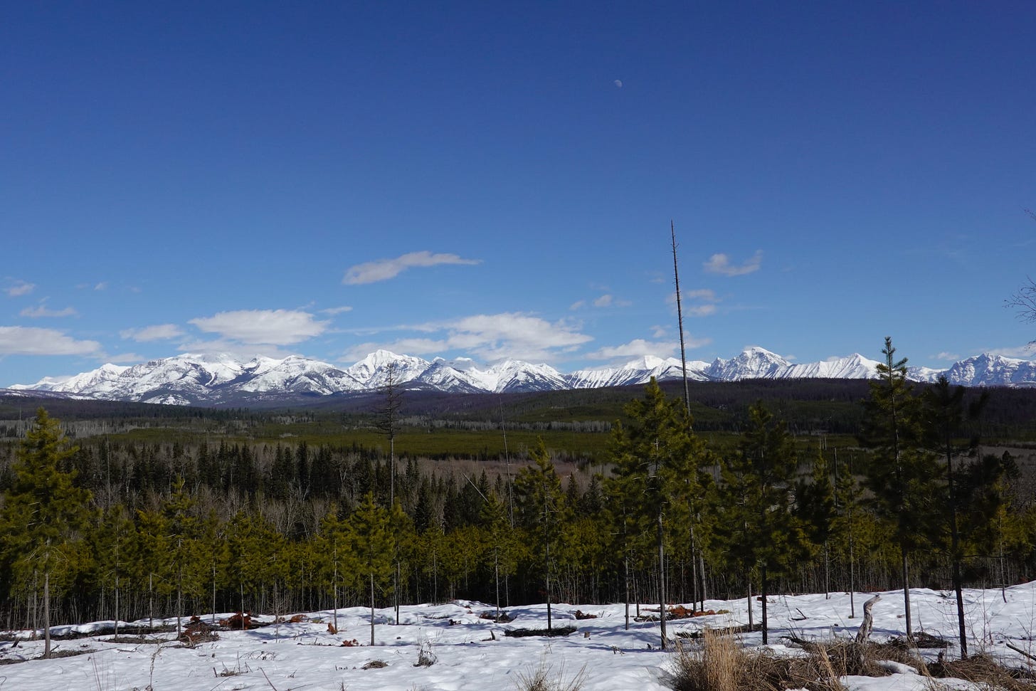Half-Moon barely visible high over Glacier National Park, where I stopped to watch a bald eagle soar for a long time on my drive out of the North Fork.
