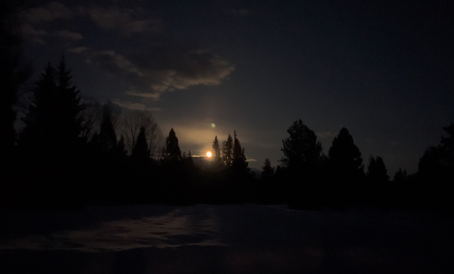 If the only answer I can ever find to my own personal quandary is not in words, but in actions—in spending time with family and friends, in laughing and struggling together—and a great deal more in simply learning to belong, letting myself belong, with rivers and starlight, wolves and ravens, basking in Moonfall in the middle of the night under a bare-branched cottonwood tree shaking ice shards and Orion’s Belt off her fingers, in learning to serve the world, and especially the place I live and love, as it is, then I can’t imagine, when I get to the end of my life, I’ll regret having done so, having spent some time to see what, in each of those moments, was worth doing.