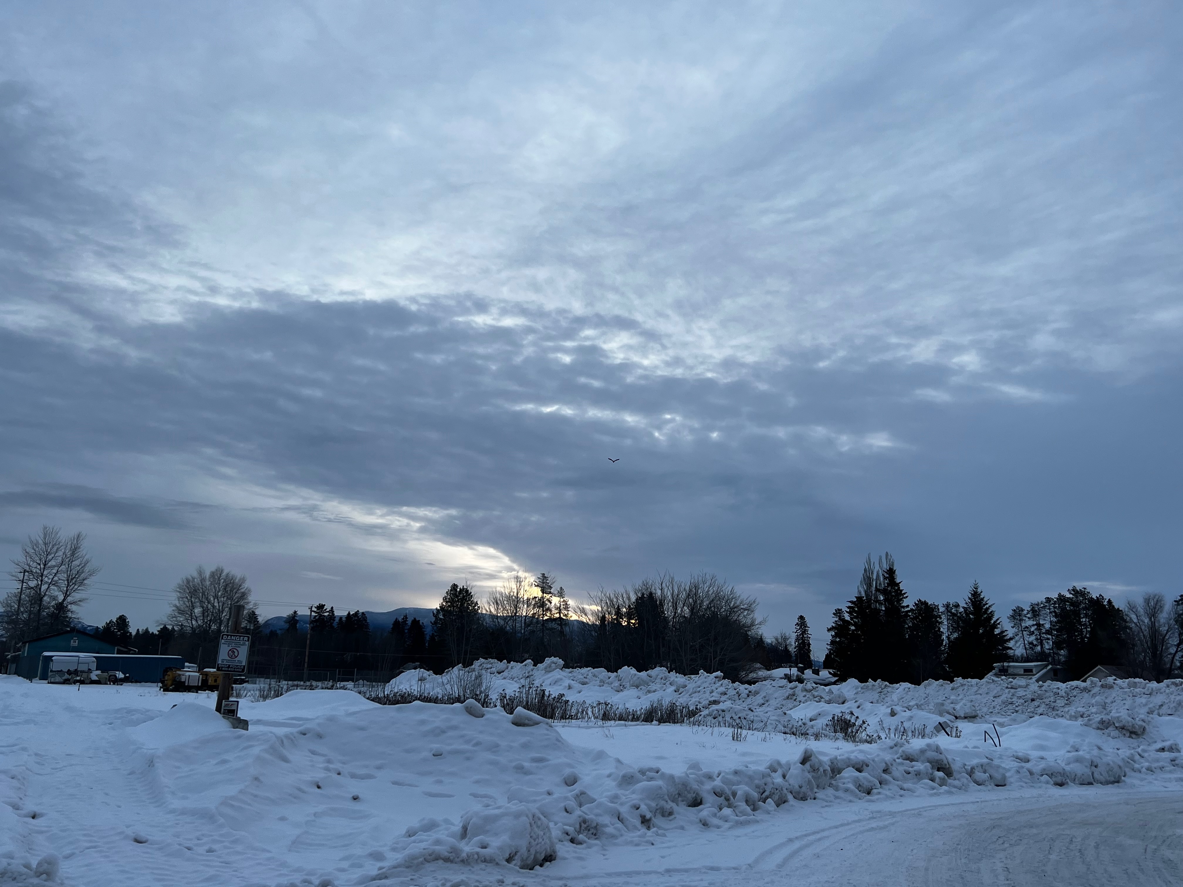 Last week I stood outside the middle school playground for a long time after dropping my daughter off, watching the sunrise, or what I could see of it. It tends to be overcast most of the time in winter where I live, but recently we’ve been getting some beautiful sunrise colors while rarely seeing the actual sun. It passes, somehow, from behind the mountains and into the clouds without showing itself, but still spreading its fiery colors and pastels across a sliver of sky.
