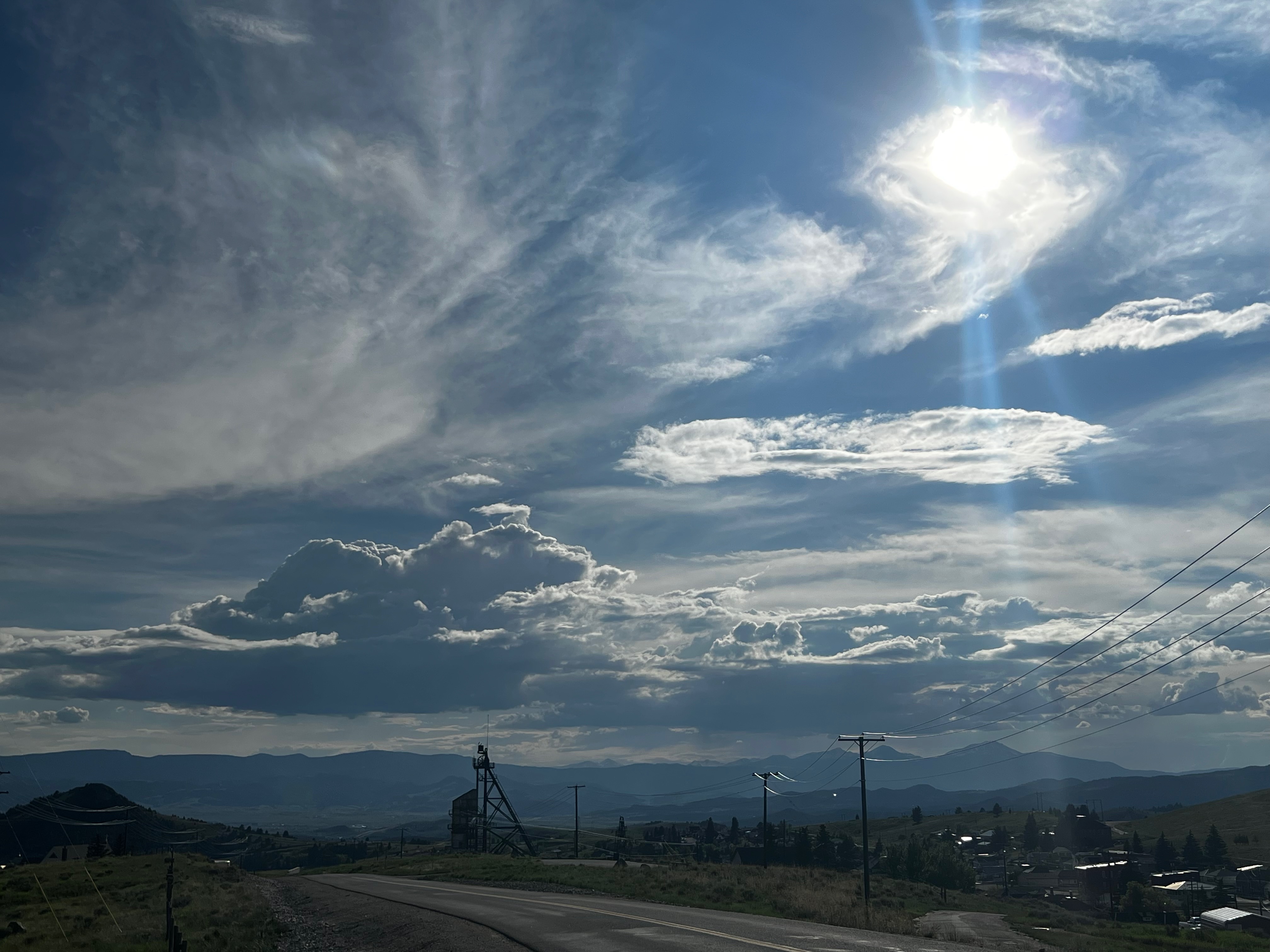 I am currently at the Dear Butte writing residency, in Butte, Montana. In a vast state with varying skies I am stupidly in love with in every region, I’d put Butte up as a contender for having the prettiest and most dynamic of them. And the proudest crows. I thought the crows around my house were pretty happy in the fir and spruce trees, but nothing like the crows hanging out on the mining headframes around Butte.